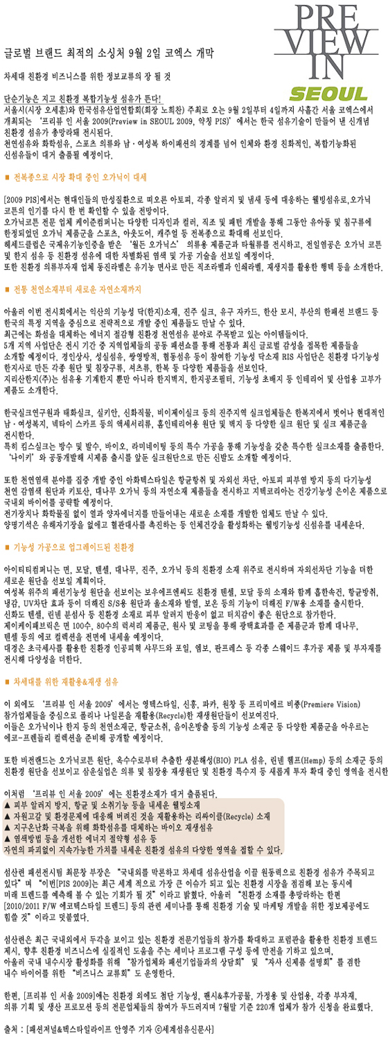 ¡®ÇÁ¸®ºä ÀÎ ¼¿ï 2009(Preview in SEOUL 2009, ¾àĪ PIS)¡¯¿¡¼´Â Çѱ¹ ¼¶À¯±â¼úÀÌ ¸¸µé¾î ³½ ½Å°³³ä