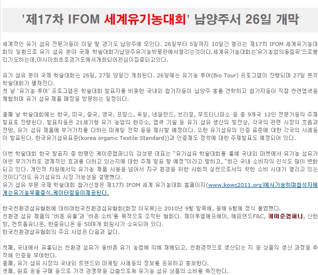 [±¹Á¦¼¶À¯½Å¹®]¡®Á¦ 17Â÷ IFOAM ¼¼°èÀ¯±â³ó´ëȸ¡¯